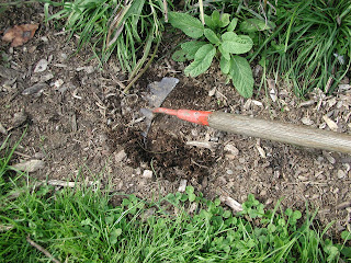 I use a hoe where a bunch of small weed seedlings are popping up, but – very important – a hoe with a sharp blade that I can skim along a fraction of an inch beneath the soil surface to separate the roots from the tops of small weeds. Being too small to have stored any energy yet, the plants die.
